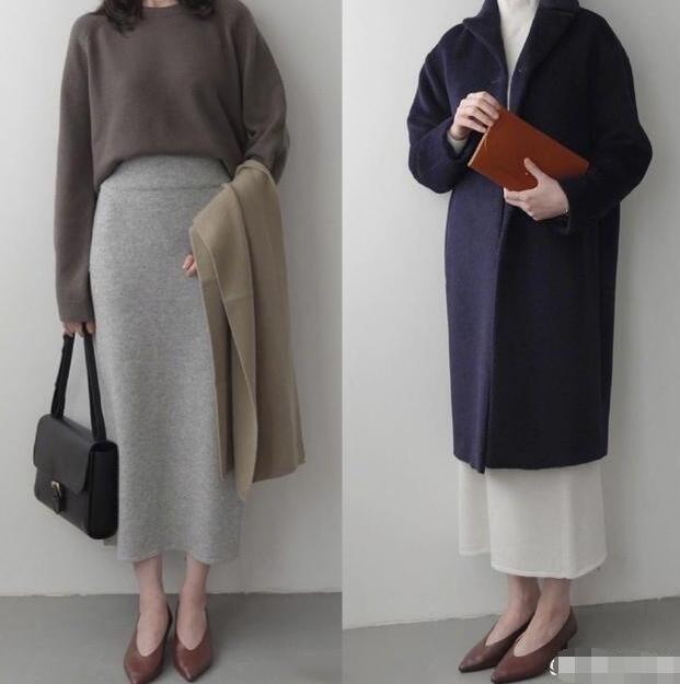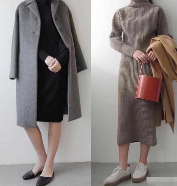 越简单的大地色搭配越温柔,比如一件浅咖色针织连衣裙搭配小白鞋,手提红色水桶包,精致大方的温柔感,黑色针织连衣裙+灰色大衣,搭配黑色单鞋,带点精致感的温柔气质,很适合上班的女生。