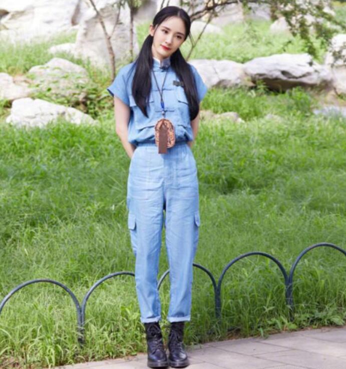 带货女王杨幂虽说已经奔三奔四了,但是穿上这身蓝色的工装连体裤就是满满的减龄风了!腰部收拢的设计能够展现出娇好的身材,凸显小蛮腰,脚踩混搭一双黑色马丁靴,可爱之余又不失一种率性街头风!