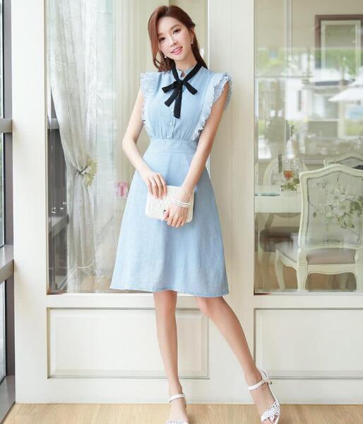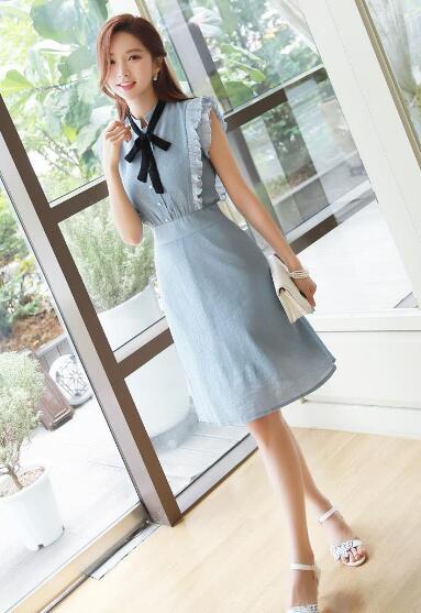 领口的黑色蝴蝶结能让你看起来更加的温柔甜美,你甜甜的微笑就是一个人的整个青春,这件美美的裙子就是你青春记忆的一个小小载体,承载着你一个甜甜的回忆。