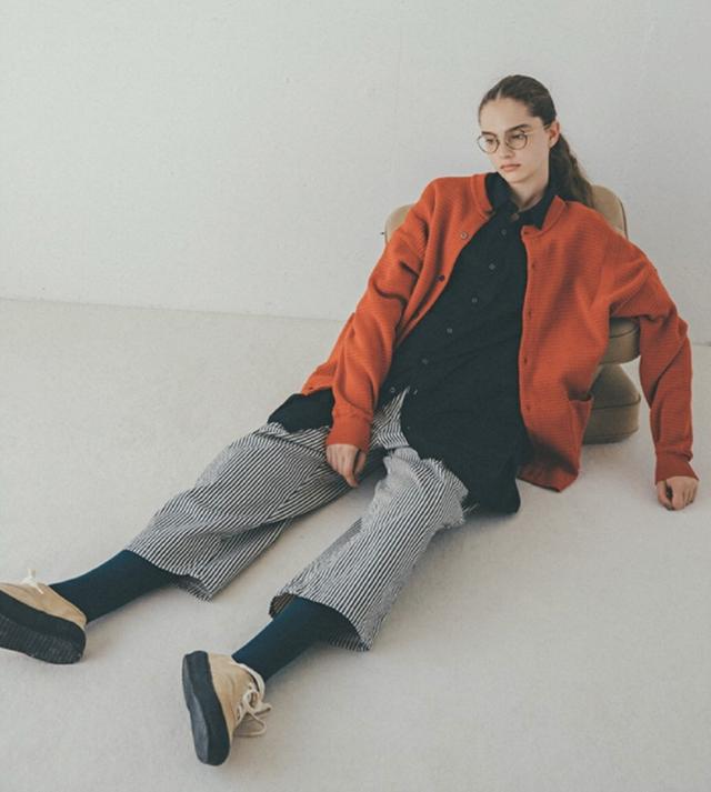 黑色的衬衫搭配大一号的针织毛衣开衫,有一种英伦学院风的穿搭气质。黑色的衬衫给人一种考究、冷静的感觉,毛衣开衫的温柔感搭配红橙色带来活力,让你温暖满满又有个性,英伦范儿女人的个性慵懒穿搭就是这种感觉了!