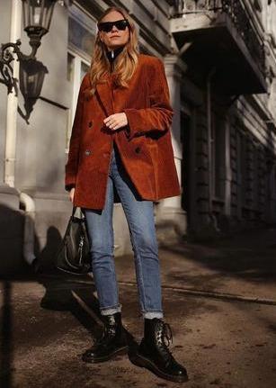 马丁靴善于打造帅气,硬挺的风格,大多以黑色和棕色闻名时尚圈,马丁靴简单又不失帅气的造型使其成为日常搭配鞋类之一。马丁靴搭配紧身牛仔裤或者阔腿裤和休闲风格的上衣,都是很不错的选择,对学生党很是适合。马丁靴还可以搭配高腰束腿裤,直筒皮裤,不仅修饰了腿型,拉长了身高,还凸出了格调,也是腿型粗,不直,身材矮小的小仙女们的一大曙光。