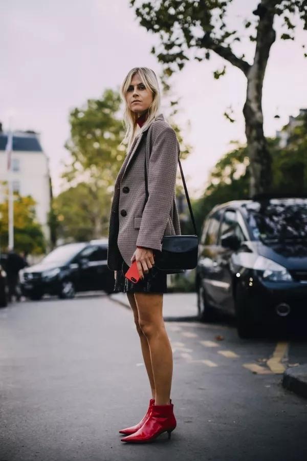 彩色短靴搭配各种各样,即使搭配基础单品也能穿出吸睛十足的时髦感。彩色短靴可以搭配一条简约的牛仔裤加基础款浅色衬衫或毛衣,这种日常系的穿搭对于各种身材的小仙女都很适合。彩色短靴还可以搭配撞色系的衣服,但全身的色系不要超过三种,这种搭配很适合黄皮肤的妹子,例如浅紫色短靴+米白色中长裙+橙红色外套,蓝色短靴+卡其色阔腿裤+绿色格子外套等等,这些搭配都极好的修饰了肤色。