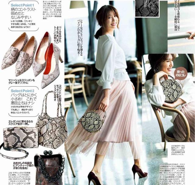 淑女气质的女人,在选择动物纹样单品的时候,适宜选择小包。这样动物纹样的面积不是很大,能起到点缀的作用,让全身的造型精致有亮点。