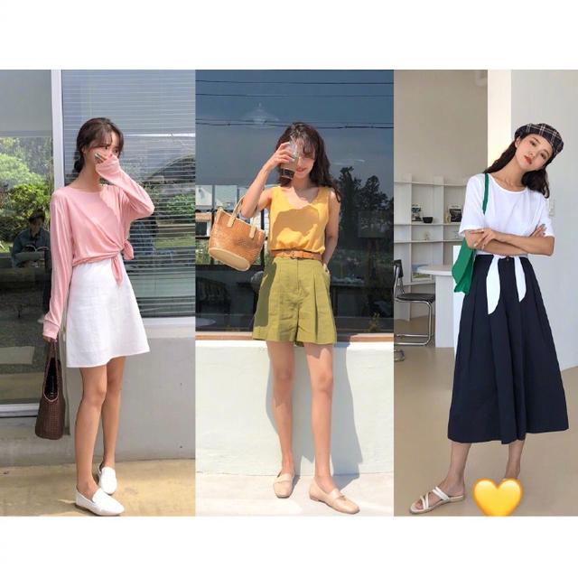 想要走法式优雅路线的妹子看过来哦,不用穿裙子也可以帮你打造出法式慵懒的感觉来!黄色背心采用棉麻的面料,柔软度就不要说了还超级显温柔。黄色更是给人活力感。下半身搭配绿色工装短裤,宽大的版型十分有股洒脱、慵懒的感觉。