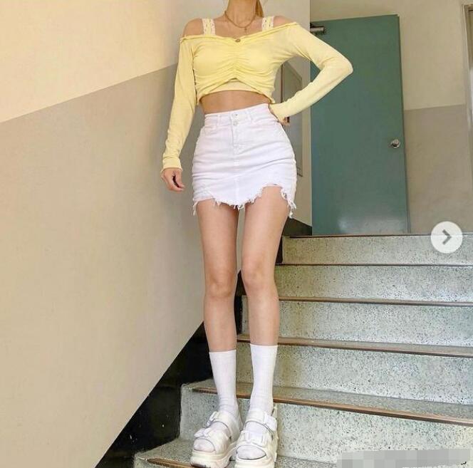 夏天里的衣服色彩怎么能够缺少了黄色,这种淡奶油黄看起来就十分的清新。如果你除了有紧致的平坦小腹之外还有jennie直角肩那就大胆的穿上露肩短装,更显飒气。