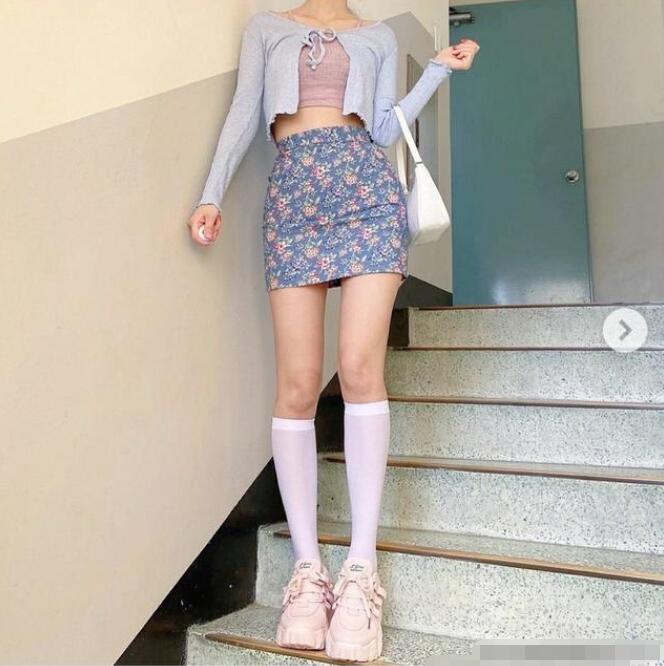 我们日常穿套装的时候可以尽可能地让我们地裙头往上提高点,这样能够更显腿长!再搭配上一双呼应温柔紫的中筒袜,让我们更加时髦,也能够让我们的穿搭颜色更加统一。