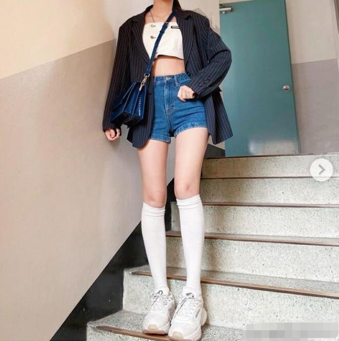 外套的搭配怎么能够少了咱们的小西装,搭配上短装热裤实在是太撩人了。因为西装本身就是比较容易穿得成熟老气,所以混搭上活力的牛仔短裤就能够很好的削弱西装的老气感,看起来更加活泼减龄。
