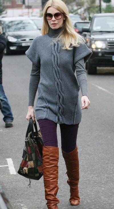 这种穿衣搭配的方法这两年是比较流行的,比较流行在冬天的时候用毛衣搭配小脚裤,然后再穿上长靴。这是比较欧美的一种搭配方法,也很显高,显瘦是很好看的,如果你是大腿比较出的女生,那么你的毛衣可以选择长一些的,也可以有效地遮住你大腿比较胖的特点。