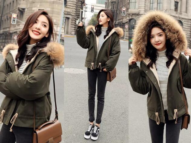 寒冷的天气,穿上这件粉色短棉衣,很美也很时髦,撞色的大毛领设计,是这件衣服最特别的地方,时尚服装!显脸小,又好温暖,短款+有点宽大的版型,无论谁穿上都显高又显瘦,还多了几分甜美的女人味,真心美,简约又大气的款,最好就是选择一条黑色小脚裤来搭配,怎么穿都美,还不会出错。