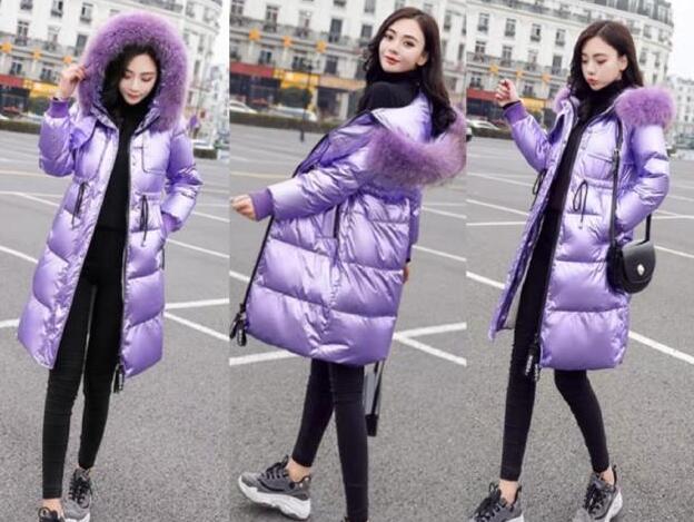 3、不知道你们有没有发觉,冬天棉衣+紧身裤+运动鞋,这样穿非常流行,关键的是很时髦,光面的紫色,上身才会增加你造型的吸睛感,时髦精的你,get到了吗?很干练利索的版型,不仅好看,还很洋气显气质,腰间做了松紧的设计,还是撞色的点缀,修身的同时,也增加了点个性感,搭配紧身裤,是百搭显瘦的小黑裤,谁穿谁时髦,再搭配一双运动鞋,很大气很有范儿,超拉风的,很时髦的一款穿搭,你想不美都难~