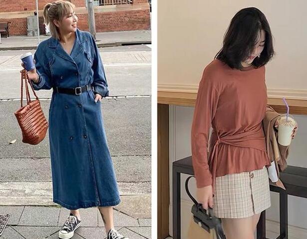 上半身比较胖的MM我建议还可以选择绑带式的穿搭,比如绑带牛仔连衣裙。选择一件双排扣的大翻领牛仔风衣连衣裙,看起来更加的女王范,侧面两口袋设计,既实用又是点缀,直筒的版型对身材的包容性也很好,臀部有肉的妹子也可以很好的遮住身上肉肉所带来的不足。重点是添加了腰带的设计,更加的修饰腰身,也显得更加的简约大气,牛仔风衣外套时尚又有摩登范,就算搭配一双简单的帆布鞋也很好看!
