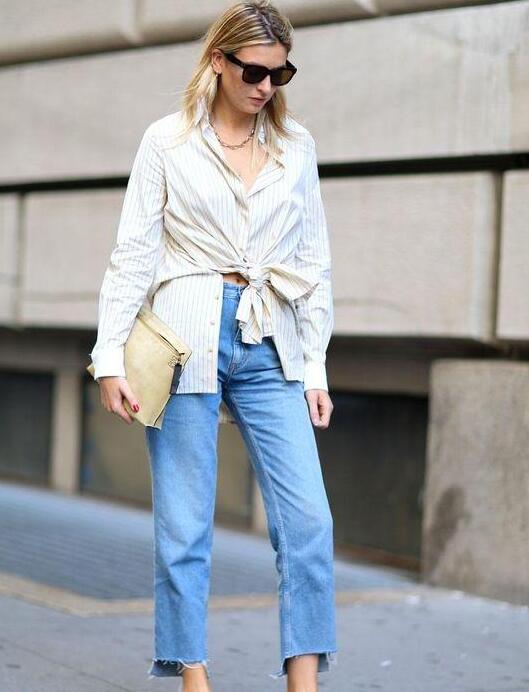 如果实在穿不惯连体衬衫的话,那就是把衬衫和低腰宽松的下装款式搭配,搭配屋!这样腰部有一些宽松的褶皱看起来也没什么问题。穿衣服时怎么塞衣角正确