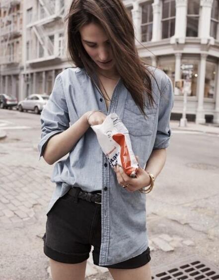 但是以上这三种衣角处理方式只适合一种衬衫,就是宽松的Oversize衬衫,比较修身的衬衫都无法这样处理。