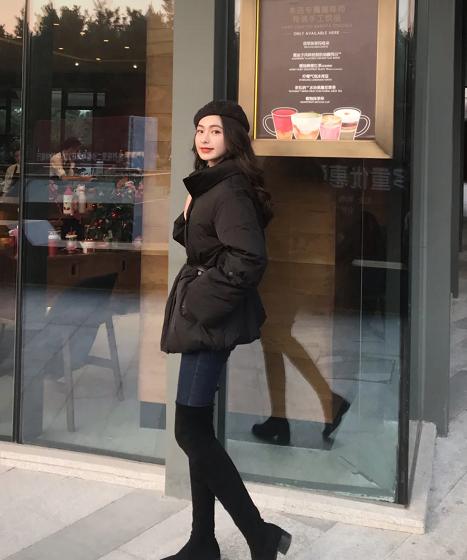 另外就是很多人在选择短款羽绒服的时候会选择穿一个短裙,里面穿肉色打底裤穿长筒靴,其实个人认为这么穿是不太时髦的,其实里面穿一条紧身的牛仔裤会更加显得有活力,并且牛仔裤的挡风效果也是十分出色的。