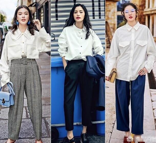 衬衣是每个女生衣橱里必不可少的单品,格纹的阔腿裤搭配白色衬衣,知性复古,黑色的烟管裤搭配白色衬衣,则多了一分干练感,蓝色的直筒裤搭配白色衬衣,衬衣随意的垂顺下来,则变得随意多了,但对于小个子的女生来说,还是把衣服塞进裤子里更显高更显气质,这也是穿衣搭配里的一点小技巧。