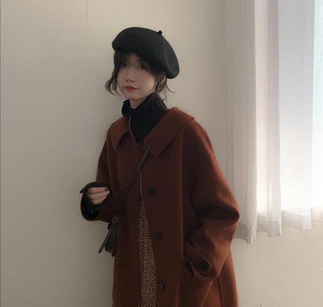 大红色的长款牛角扣外套更适合身形比较高挑的女生来穿,对于个子矮小女生而言,你们也有最适合的服装。这件驼色的短款外套就很容易被个子矮小女生穿出可爱的感觉,它的版型比较普通,没有太过出挑的地方,上面也没有过多的花纹或是印花图案作为点缀,但能够从视觉上营造出舒适的效果,搭配屋。再配上一款柔和而又保暖的围巾,还能够呈现出精致的小脸。