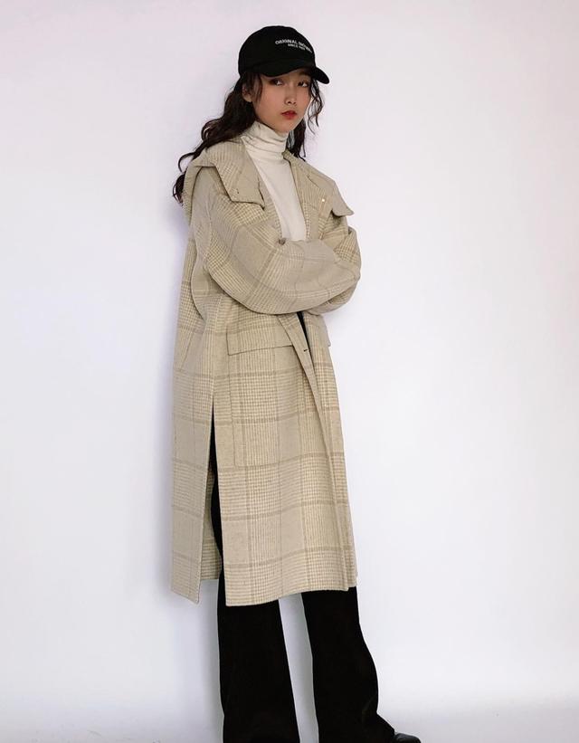 米白色是很衬肤色的一款颜色,冬天穿上一款米白色的大衣,还能够展现出温和而又柔软的女性气质。这款大衣的版型比较宽松,在下摆处还采用了一些开叉的设计,能够展露出下半身的裤装,整个的造型感更为强烈。内搭一件白色的高领衫,紧紧的包裹住颈部的线条,能够遮挡略微粗壮的脖子,配以一头妩媚弧度的小卷发,这个冬天还愁你的穿搭不够有美感吗?