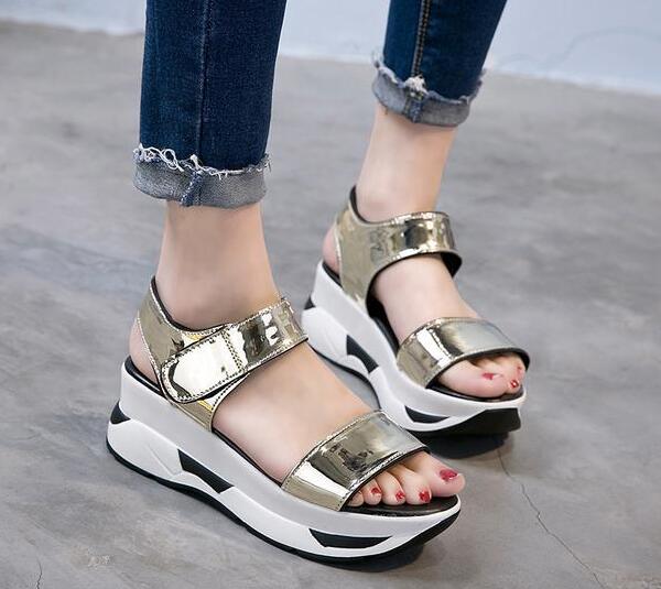 这种凉鞋搭配一些休闲阔腿裤、修身牛仔裤都是可以的,可以让整体服装的风格更加的小清新一点,也有一定的增高效果,是现在一个比较流行的女生凉鞋款式。