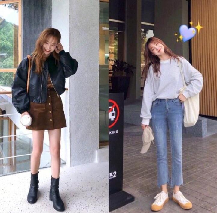 想要一种更加甜美大方的穿搭气质,那么在服装色系上,也应该尽量选择一些优雅大方的色系。比如说柔和的灰色系,或者是浅蓝色牛仔裤,都是不错的颜色。二者搭配在一起,也是格外精致甜美的。灰色卫衣,塞进蓝色牛仔裤里面,打造出更加高挑的腰线,修身的裤腿,衬得双腿更加纤细,这样的穿搭对小个子也是非常友好的。