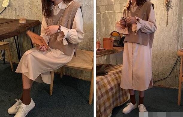 25岁的你,在穿搭上就应该懂得越简单越好看,长款的衬衫搭配针织马甲,不仅能凸显自身的独特风格,而且还能让你在秋季的搭配脱颖而出,让着装显得更加精致,有种韩范的感觉,试试小白鞋与堆堆袜搭配,更好看,爱美的你一定不要错过!