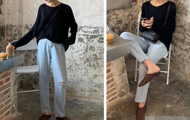不想要穿得太张扬,又想舒服好看,纯色系的单品绝对能胜任,黑色的针织上衣,不显浮夸吧,想要穿搭不那么暗沉,可以选择稍微浅色系的牛仔裤,小小的破洞设计也十分带感呢,25岁,最好就用简单的单品衬托出自身的美,但是又不会是路人的感觉!