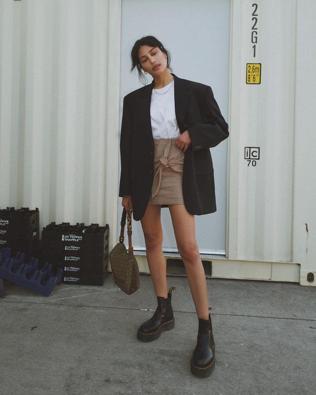 西装外套也是秋天必不可少的单品之一,西装很容易给人造成一种严肃、正式、不易靠近的感觉,但只要搭配得当,西装也能穿出温柔可爱风!休闲西装外套内搭配一条有设计感的包臀裙,温婉大方又不失俏皮可爱,这样搭配超级显气质!