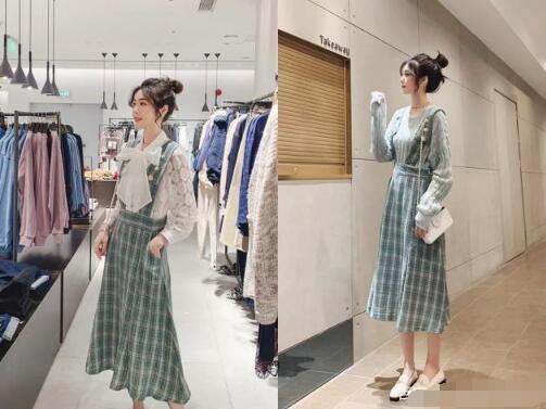 其实绿色是比较难搭的一个颜色,他是2019年春夏流行色,如果是全绿色的话,就很难驾驭,但是可以选择这件带有格纹设计的背带裙还是雪纺材质的让你穿上很舒服,随意内搭一件白色的衬衫造型就很美了,带有公主气质感,还有减龄的效果,而且是比较好穿的款式,整体造型真的又美又高级哦!