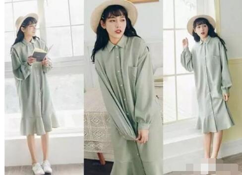 炎热的夏天,就要穿那一抹绿才更清爽,这款今年很火的薄荷绿连衣裙,穿上身给人一种很干净、很清新的感觉,单排扣门襟的设计,简约又大方,穿脱方便,恰到好处的九分袖子,很适合手臂粗的女生,上身特显瘦的效果,宽松的大裙摆,飘逸间尽显曼妙的身姿,脚上随意搭配一双青春的小白鞋,整体穿搭就减龄又时髦的哟。