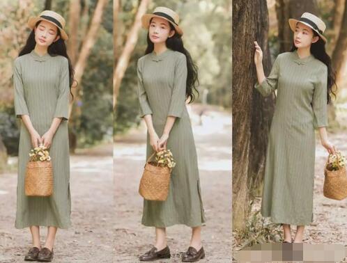 这款连衣裙看着就感觉一股清晰扑鼻的效果,旗袍的设计,经典又复古,上身很文艺很时髦feel,裙身竖条纹的设计,优化身体比例,视觉上就很显高了,修身的设计,很好地穿出瘦美的身材曲线,很美也很时尚,春夏天是适合度假的季节,穿这款绿色旗袍连衣裙,再搭配一双棕色小皮鞋,真的美太多,穿上又美又高级!