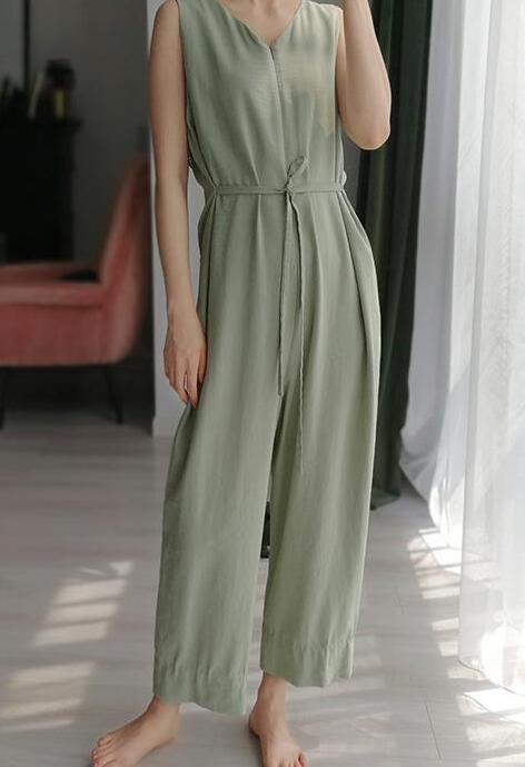 夏天实在是太热了,女孩子们还口语选择吊带的连体阔腿裤,这种设计是立体的剪裁,肩膀的地方用细带的方式来进行打眼而成,领口是小V的设计,肩部和颈部都得到了修饰,显得性感而且迷人。建议大家选择的时候要挑面料精致的款式,舒适贴肤。