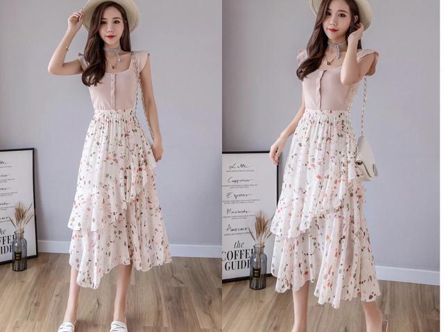 很显瘦的碎花雪纺长裙,A字的设计,减龄的元素,学院风满满的,不规则的印花设计,让裙子更显个性,时尚的中长裙,非常遮肉显瘦的,ins超火的裙子,穿衣技巧。荷叶边的裙摆,转动间更灵活感,高腰的处理,搭配背心T恤,清凉又时髦,随意搭配鞋子都很好看。百褶长裙和T恤怎么搭配?