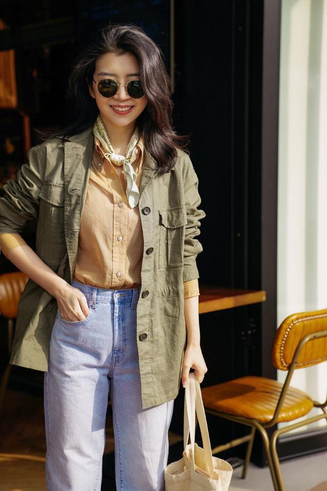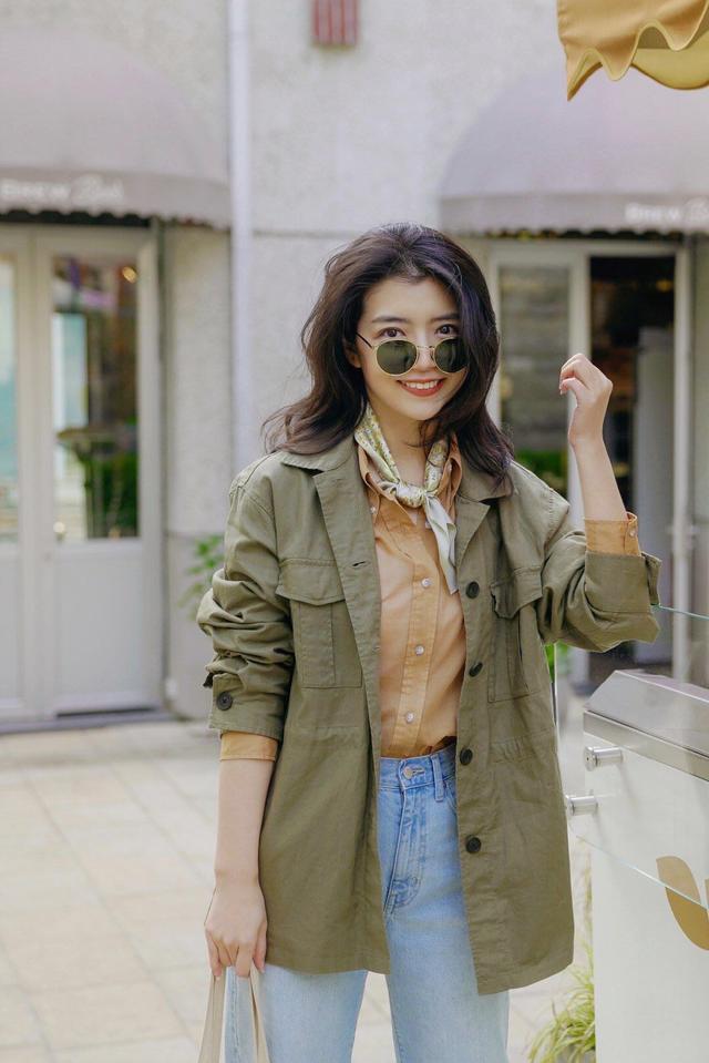 军绿色的外套是那种不吸水的面料,但却有一种很高级的样子,而且军绿色容易让人产生一种敬畏感,它本身所具有的气质与其他颜色的单品是非常不同的。