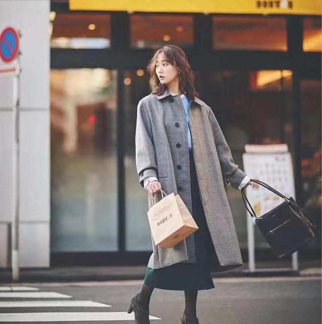 颜色比较素的外套进行搭配时,我们可以在裙子上面下功夫,这款外套颜色非常朴素,但是我们选择的裙子也是比较吸睛的。冬日里面不仅仅是碎花裙,可以吸引人的眼球,同样可以选择非常具有英伦风格的格纹半身裙,这款裙子在正面还有一排的扣子,进行了点缀,比较学院风一些,很容易穿出优雅的女人味,提升气质。