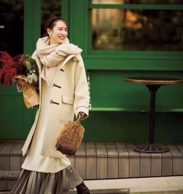 双排扣的羊角扣外套是非常具有学院风的特点的,大多数女人都会很喜欢这样的穿搭,如果是职场女性的话,穿这种服装可以在里面再穿一个有层次感的连衣裙,底摆的裙摆露出一部分,会让整体变得更加有气质,改变这种外套以往一贯的风格,有青春减龄的效果。
