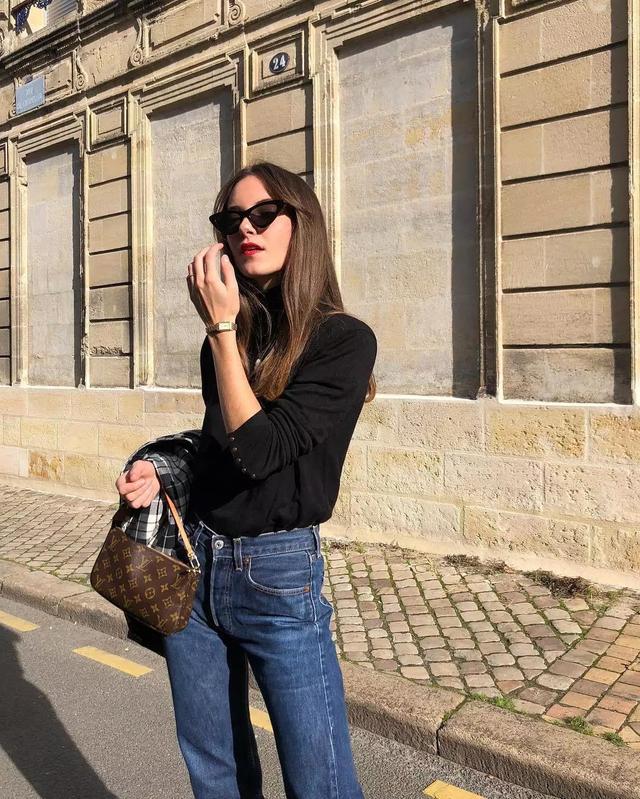 这套搭配在小酱眼里就是不用力过猛的最好解释了,全身只有黑、蓝两色就足够撑起来,简简单单以气质出众。黑色修身针织衫显瘦又高冷,搭配中腰直筒牛仔裤一股率真美透过每一丝发梢都散发了出来。整套搭配看不到任何性感的元素,但是却能让人深陷其中。