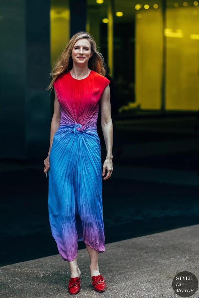 虽然这款连体裤是高饱和度的色彩系,但是很好的避开了“色彩多就是低级”这个坑。主要是依靠它的剪裁和设计理念,在色彩上运用了渲染和渐变设计,使得更有层次感如流水般流畅。腰部正中的螺旋纹设计与一体式剪裁,更是有股美学概念在里面~