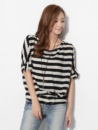 相信很多女性的衣橱里都有至少一件t恤吧,因为它休闲百搭的特点,所以很受男生和女生们的喜欢,对于年轻人们来说,比较偏向印有字母和卡通的款式,而成熟的女性更加适合条纹的,选择修身的款式,更加显大方简约,搭配牛仔裤,更加具有青春的气息。