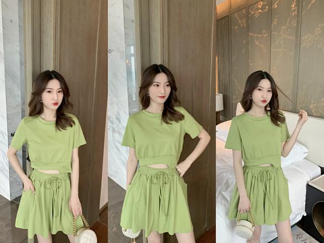 2、很有吸睛感的一款连体裤,有没有?茫茫人海之中,穿上这款青苹果色的连体裤,让你立马成为大家的焦点,经典的圆领设计,毫无设计感可言,但是它依然是大家喜欢的款,舒适的同时又可以修饰脸型,怎么穿都好看,整体简单的设计,由于腰间镂空的设计,瞬间提高了时髦度,又让整体的造型变得那么的性感,那么的迷人,夏日还可以增加清爽感,简直是一举两得,阔腿短裤的设计,舒适又显高显瘦遮肉,这可是小个子最日常的穿衣搭配,夏日配上双凉鞋就ok。
