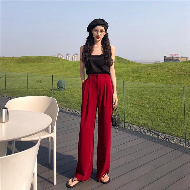不知道仙女们有没有去尝试过背心类的穿搭呢?其实背心也是非常显气质的一种。不过背心的颜色最好选择黑色,黑色不仅显气质还非常的显白,一些皮肤较黑的妹纸也可以尝试一下。下面可以搭配一条红色的休闲阔腿裤,这种裤子本身就带着一种向下垂的感觉,立马就将自身的气质散发出来。再搭配上黑色与红色这样复古色调的融合,让搭配的整体都显得非常高级。如何穿衣搭配更显气质图片