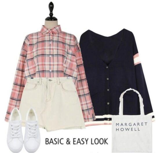 穿出休闲田园少女风,也需要格纹元素助阵,粉色格纹衬衫搭配白色高腰包臀牛仔短裙和小白鞋,显肤白有气色同时秒变可爱俏皮田园少女;外搭藏青色V领袖子撞粉色条纹开衫,与内搭衬衫配色相呼应不显突兀,深色开衫外搭也超显瘦。时尚服装,再搭配白色字母印花帆布袋更休闲满满。