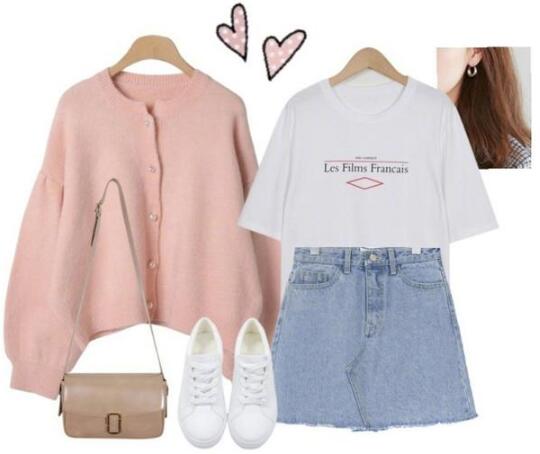白色字母印花圆领T和浅蓝色水洗磨蓝短款A字牛仔裙是决定整个穿搭休闲走向的关键,也是小个子日常休闲穿搭的显高利器。搭配粉色廓形泡泡袖珍珠扣开衫和豆沙粉小方包妥妥穿出少女心,跟紧窄裙装版型对比还能超显腿瘦,搭配小小银色耳环等精巧配饰更无处不在彰显少女心。