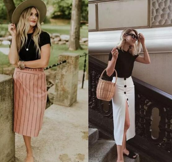 当然,如果你只是想做一个安安静静的女生,搭配裙子是不错的选择,搭配白色开叉半裙,开叉的设计使腿部的线条感若隐若现,经典的黑白,时髦不过时。
