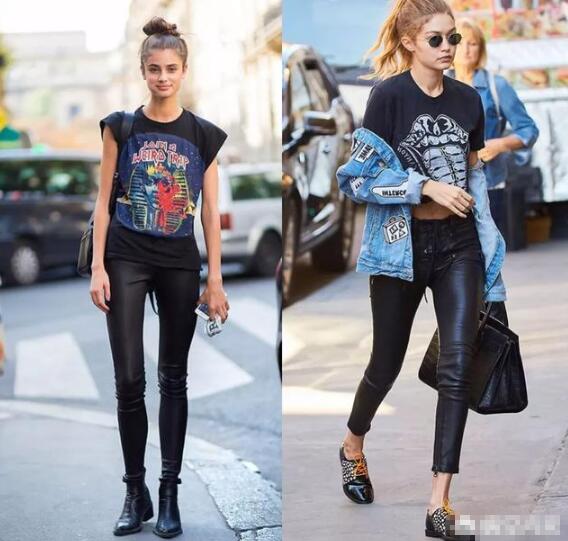 如果你是街头it girl,搭配黑色皮裤再适合不过了,但皮裤比较挑身材,适合腿细好看的女生,搭配裸靴,街头机车范,搭配平底鞋,时髦达人girl。
