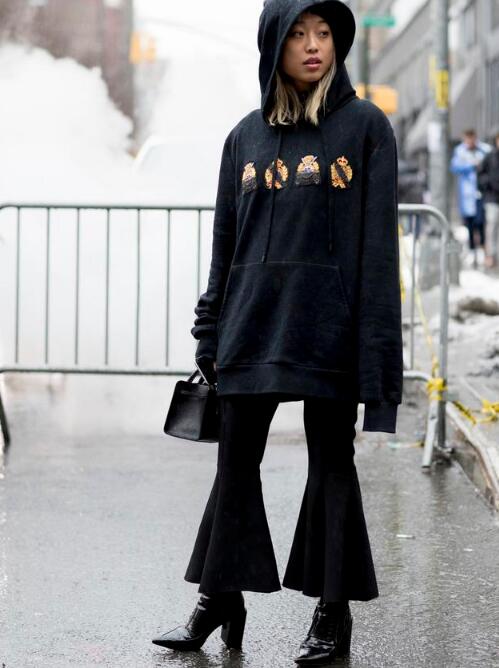 卫衣搭配喇叭裤,也是非常的时尚的。因为卫衣的款式有很多,有一些是连帽的卫衣,有一些是不带帽子的,但是卫衣都有一个风格,那就是比较宽松。如果你想要搭配喇叭裤的话,也可以选择那种不戴帽子的卫衣,其实也是很好,搭配衣服的。喇叭裤是比较受欢迎的,能够让你的腿看起来显得更长。