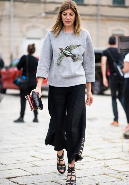 卫衣搭配阔腿裤就有一种韩版的感觉显得非常的大气,因为我们都知道韩版的衣服就是比较大的。能够给人一种比较休闲,但是又不是一种大牌的感觉,所以,大家可以尝试卫衣搭配阔腿裤,这种宽松的穿衣搭配风格。能够给人一种休闲和慵懒的感觉,走在大街上又是一道亮丽的风景线。