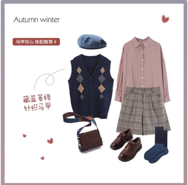 粉色的衬衫上衣搭配一款蓝色的毛衣背心,两种截然不同的颜色风格搭配之后,让你将粉色的可爱和蓝色的稳重融合于一起,更加有一种文艺而优雅的感觉。搭配一条格子款式的短裤,颜色相对比较淡雅,能够提升整套搭配的淑女气质,针织背心怎么搭配?复古配饰包和鞋给人视觉上更加舒服的感觉。