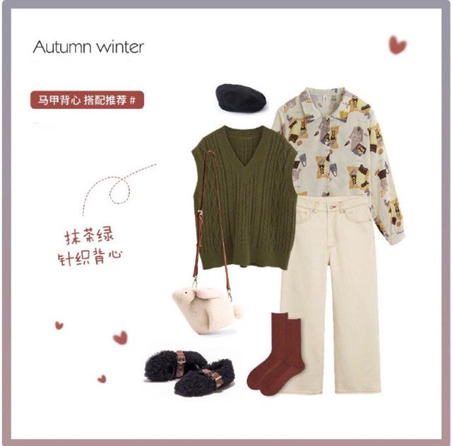 花样衬衫在这个夏天是相当流行的,而秋天这种忽冷忽热的天气,用衬衫搭配一款毛衣背心就能够很好的凹造型,并且还有很好的保暖效果。在搭配的时候用比较花哨的衬衫,搭配比较素气的针织背心,搭配纯白色的裤子,让你看起来非常有优雅气质。要想给穿搭增加点可爱气息,选择毛茸茸的鞋子和包包吧!