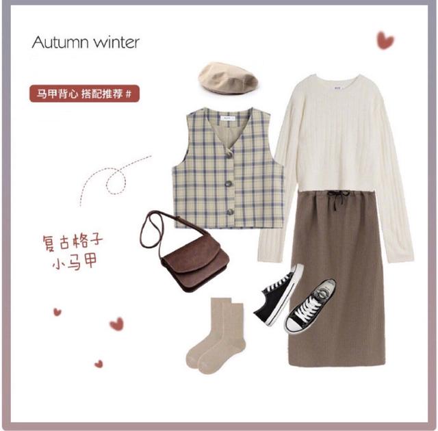 白色的毛衣显得女人非常纯洁和通透,搭配中长半身裙让你有一种文静的感觉。秋天搭配一款毛衣背心吧,让你学院风满满,顿时有很青春的感觉。帆布鞋的选择是让女人更加休闲的一款单品,让你时尚又充满运动的感觉。