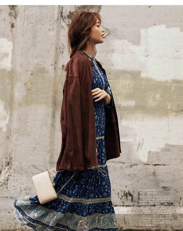 这样的色系搭配是不是很多人都没想到呢?棕色的外套看起来很是雍容华贵,女人穿上它会显得特别的知性与温柔。款式是比较休闲的,而且垂落感也比较的强,所以穿着会比较的宽松。内搭一件蓝色的民族风连衣裙,很有波西米亚的风格,看了让人忍不住回味~