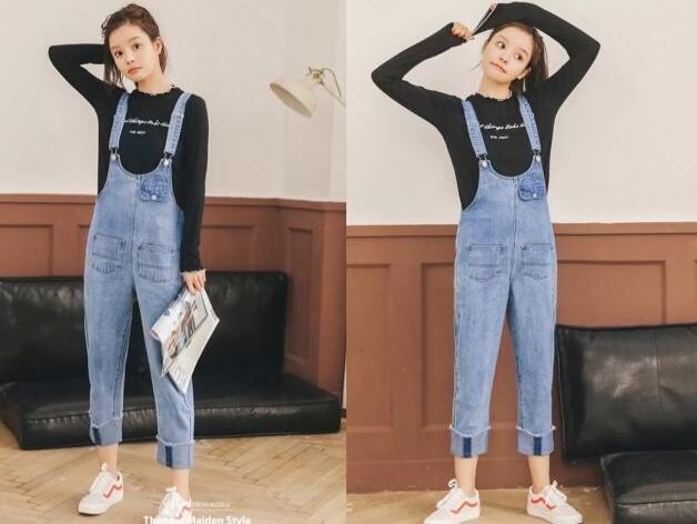 春天的长袖T恤依然是主打的单品,很休闲又舒适,简约的圆领,衬托出很美的颈脖线条,经典的色调,百搭性很强,字母的元素点缀,更是时髦,搭配浅蓝色的背带阔腿裤很甜美又减龄,宽松的裤型,视觉上也是超级显瘦,九分的裤长,搭配运动鞋也是很显高的。